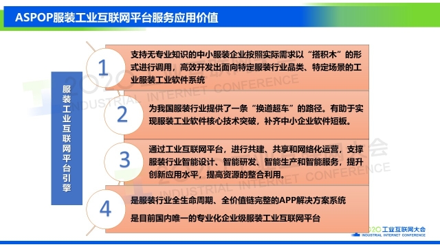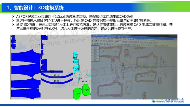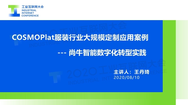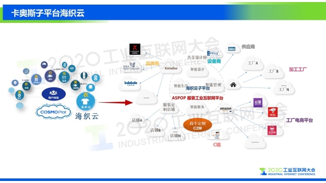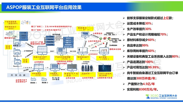 點(diǎn)擊下方鏈接,查看演講實(shí)錄: 專家說 “海思堡是COSMOPlat賦能紡織服裝行業(yè)的一個(gè)鮮活例子,消費(fèi)者足不出戶就可以實(shí)現(xiàn)在線試衣,量身定制,企業(yè)則通過完整的工業(yè)互聯(lián)網(wǎng)平臺(tái)系統(tǒng)架構(gòu),實(shí)現(xiàn)業(yè)務(wù)流程的標(biāo)準(zhǔn)化和數(shù)據(jù)化驅(qū)動(dòng);全品類大規(guī)模定制的全流程數(shù)據(jù)化和數(shù)據(jù)實(shí)時(shí)化,使企業(yè)的運(yùn)營(yíng)成本降低30%,生產(chǎn)效率提高30%,產(chǎn)品生產(chǎn)和設(shè)計(jì)周期縮短70%,原料庫存減少60%,成品庫存幾乎為零。相信在不久的將來,我們會(huì)看到COSMOPlat賦能更多的紡織服裝企業(yè)。” 以下是演講PPT 敬請(qǐng)閱讀