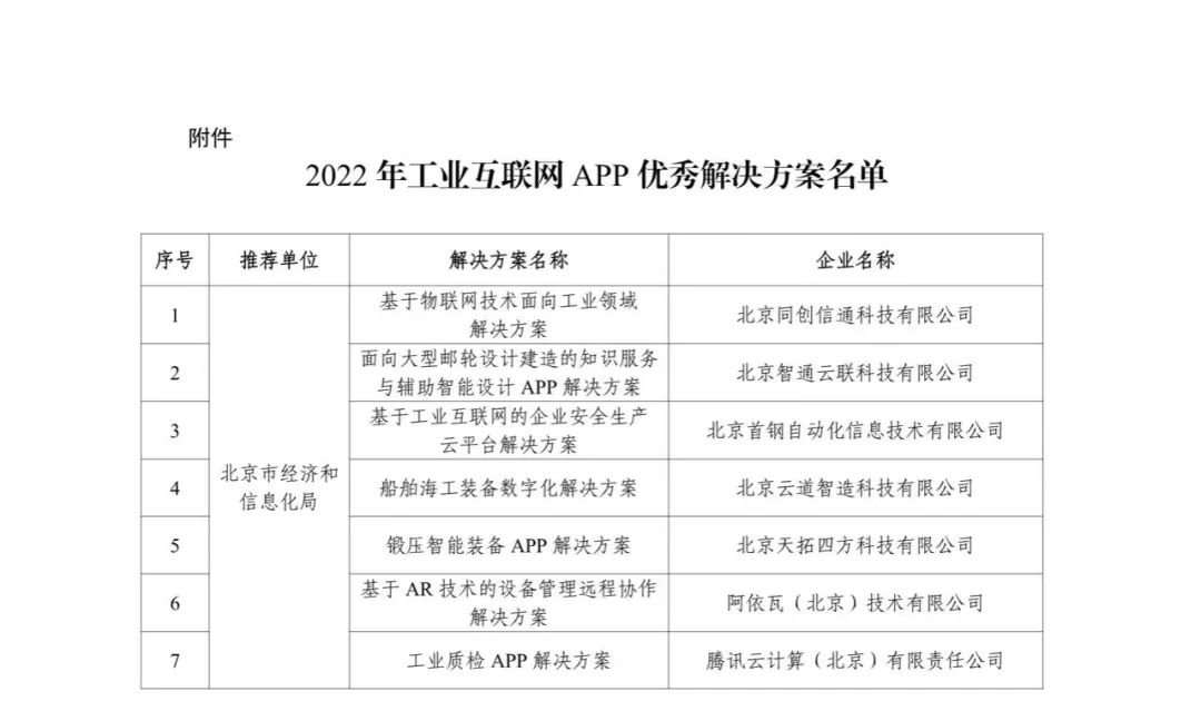 關于公布2022年工業互聯網APP優秀解決方案名單的通知