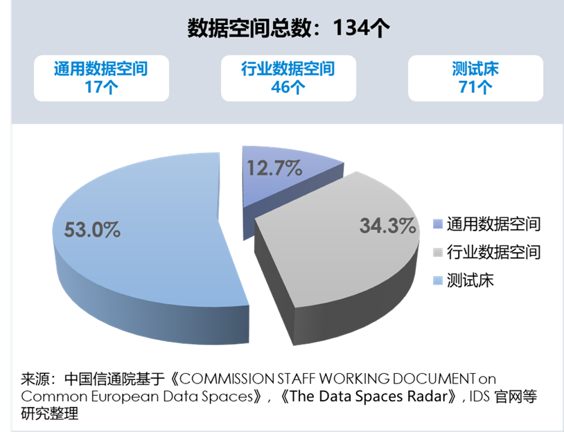 從推進方式上,歐盟數據空間已形成通用數據空間、行業數據空間及測試床三大類別布局,并進一步推動各個空間的互聯互通和互操作。