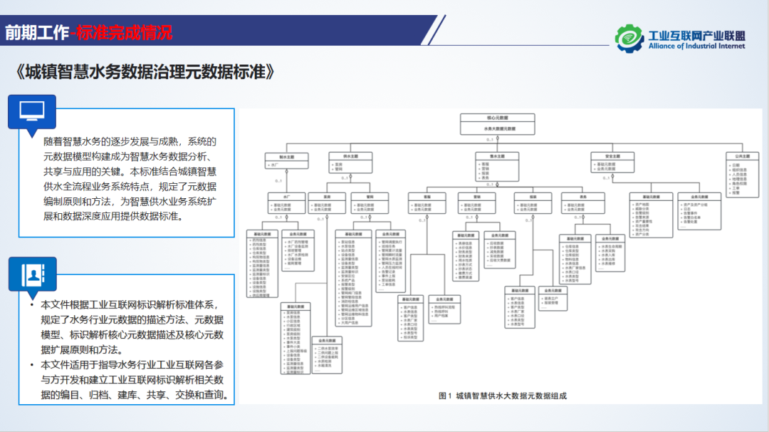 12月28日,由水務行業特設組牽頭立項的《城鎮智慧水務數據治理元數據標準》正式通過聯盟審議,該標準為首個智慧水務數據治理標準,充分結合了城鎮智慧供水全流程業務系統特點和中國智慧水務平臺優秀企業在數據治理中的經驗,規定了元數據編制原則和方法,為智慧供水業務系統擴展和數據深度應用提供數據標準。