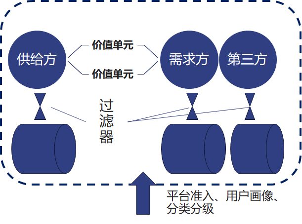 解決方案=價值單元+過濾器。其中雙邊/多邊過濾器是平臺的通用和基礎解決方案,是平臺用來組織、管理和優化參與者之間交換價值單元的機制。包括搜索引擎、評價系統、推薦算法等,不同行業平臺的企業及人員的準入規則和平臺行為規范、技術規范與安全標準、商業合規、用戶客戶偏好與市場需求是背后重要的支撐;