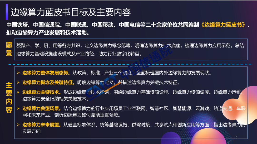 工信部等六部委聯(lián)合發(fā)布《算力基礎(chǔ)設(shè)施高質(zhì)量發(fā)展行動(dòng)計(jì)劃》,明確提出促進(jìn)邊緣算力協(xié)同部署,加快邊緣算力建設(shè),支撐工業(yè)制造、金融交易、智能電網(wǎng)、云游戲等低時(shí)延業(yè)務(wù)應(yīng)用,推動(dòng)“云邊端”算力泛在分布、協(xié)同發(fā)展。中國鐵塔、中國信通院、中國聯(lián)通、中國移動(dòng)等單位共同啟動(dòng)邊緣算力研究項(xiàng)目,并形成了《邊緣算力藍(lán)皮書》,也期待與行業(yè)內(nèi)合作伙伴共同合作,持續(xù)推動(dòng)邊緣算力技術(shù)體系構(gòu)建及產(chǎn)業(yè)生態(tài)發(fā)展。