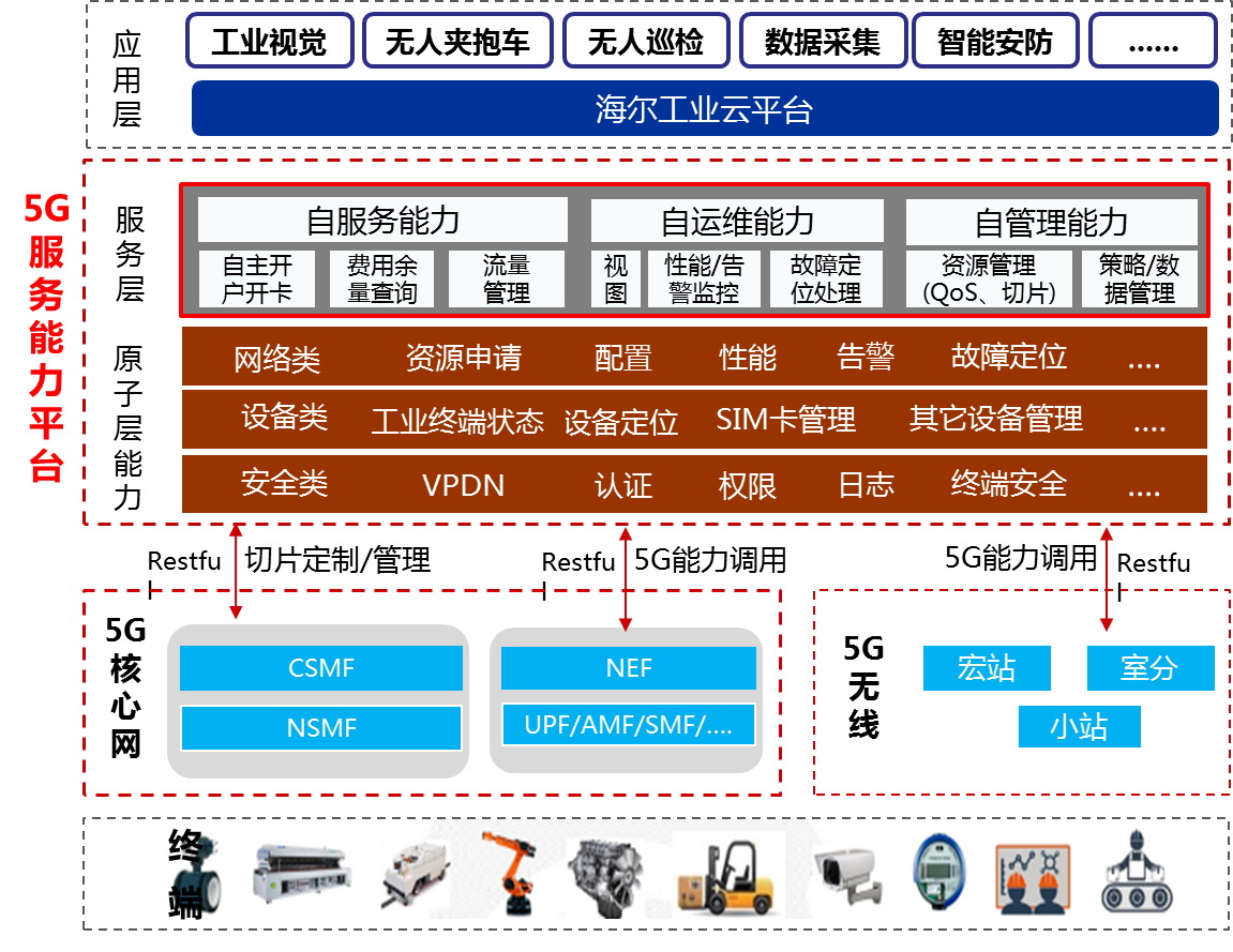 自研5G服務能力平臺,普遍適用于5G虛擬企業專網管理、運維、網絡能力開放。