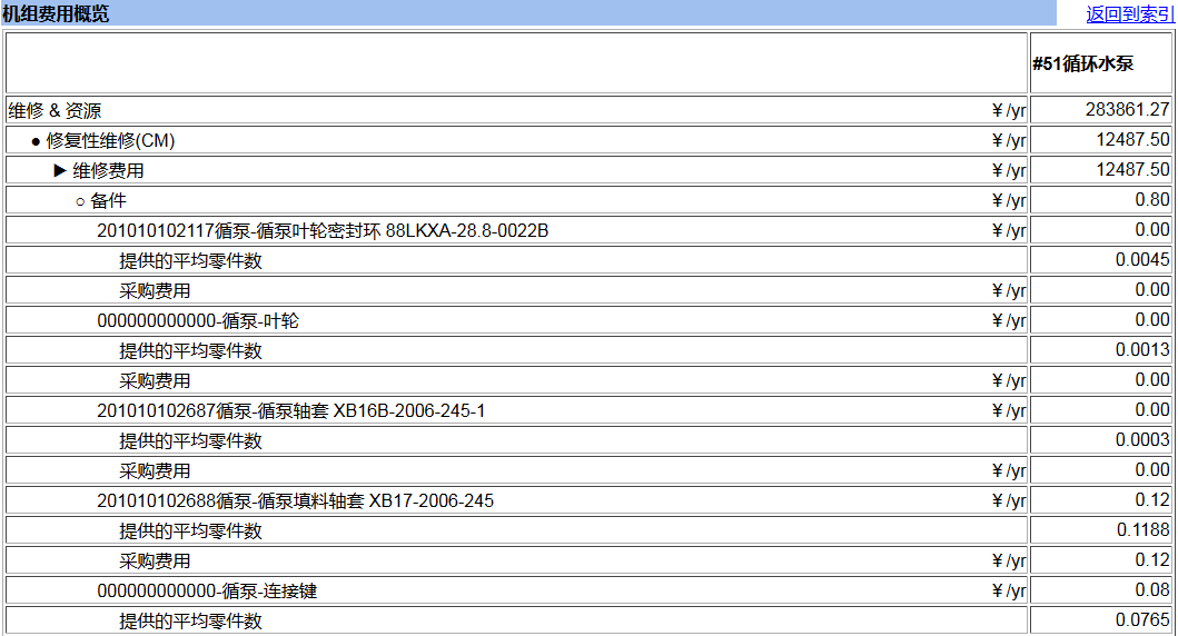 通過制定各設備的拆解結構關系,失效原因分類,不同部件的可靠性壽命時間,檢修成本等,并與實際檢修記錄相結合,建立以可靠性為中心的維護優化策略,通過調整和比對不同的檢修方案,優化現有的檢修策略,達到消除設備欠修,避免設備過修的目的,在整體保障設備可靠性的同時,降低檢修費用。為設備的經濟性提供了支撐。