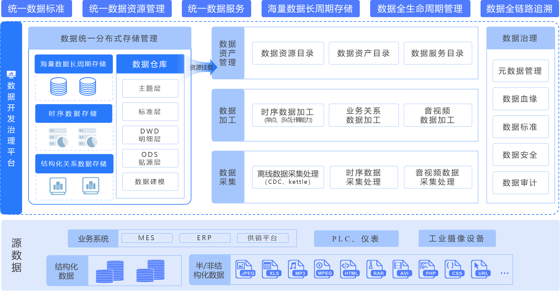 數據開發治理平臺提供具有行業特征的一站式智能制造數據服務,支持數據全生命周期管理,集數據采集、存儲、開發、治理等功能于一體,為上層平臺或應用提供數據開發與服務能力,支撐基于大數據的智能應用高效開發和布署,提高生產要素配置與利用效率,推進生產數據持續創造價值,實現以經驗和直覺為核心的作業決策以數據為驅動的智能服務進化