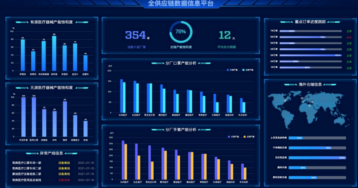 新冠疫情初期,戰(zhàn)略伙伴方的B2B平臺接到大額國內(nèi)訂單,此前平臺主要從事跨境貿(mào)易,IU云系統(tǒng)覺察異常并發(fā)出提示。鑒于此,該平臺開始馬上準備緊急反應預案,若訂單量一旦增加到預判數(shù)值,即開啟預案。隨著疫情蔓延,公司陸續(xù)接到來自歐洲、北美、拉丁美洲等60多個國家和地區(qū)的訂單,需求迫切且數(shù)量巨大,公司調(diào)動所有工廠開啟7*24小時緊急預案,供應商材料準備、生產(chǎn)線人員及設備僅需一天即可達到要求,訂單自動拆解分派,所有產(chǎn)線按計劃滿負荷運轉(zhuǎn),日產(chǎn)量激增15倍,最大程度保證訂單如期交付。