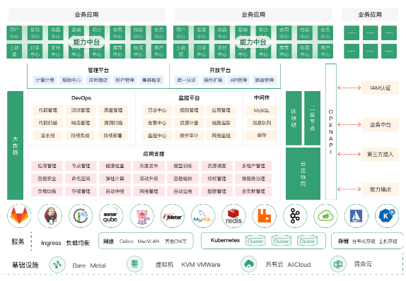 PaaS平臺(tái)對(duì)底層基礎(chǔ)設(shè)施和數(shù)據(jù)中心不敏感,可以平滑納管物理機(jī)、私有云、公有云等多種異構(gòu)基礎(chǔ)設(shè)施,同時(shí)可以支撐多數(shù)據(jù)中心并將應(yīng)用負(fù)載進(jìn)行有效平衡,也可以有效保障數(shù)據(jù)在多分區(qū)的安全隔離和相互備份。采用先進(jìn)的容器和大規(guī)模集群管理技術(shù)構(gòu)建容器云平臺(tái),借助容器的輕量級(jí)、標(biāo)準(zhǔn)化和彈性資源供給等能力,將工業(yè)應(yīng)用進(jìn)行標(biāo)準(zhǔn)化封裝并有效的自動(dòng)化管理,提升應(yīng)用的上云速度和能力。