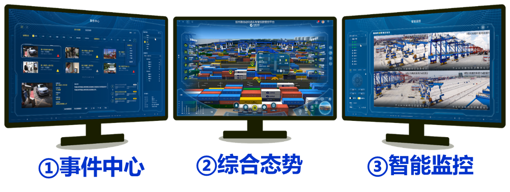 智慧安防管控平臺:融合港口內各個子系統,實現數據互聯互通,實現整個港口(人、車、機、物)的一體化管控。