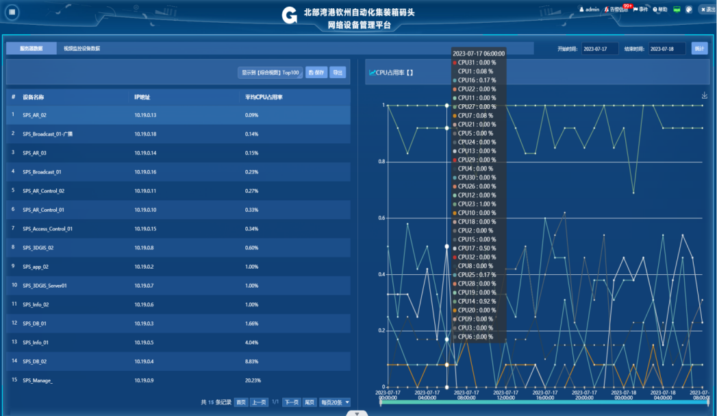 整合生產、安防兩張網中的視頻監控平臺,給安監部、操作部在一個客戶端上對安防資源進行統一管控,AI 人體、安全帽、港機定位、司機行為分析等功能。