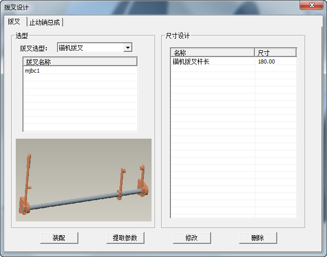 撥叉設計中包含撥叉以及止動銷總成兩部分,撥叉中又細分為錨機撥叉以及系泊撥叉;撥叉設計的初始界面如下: