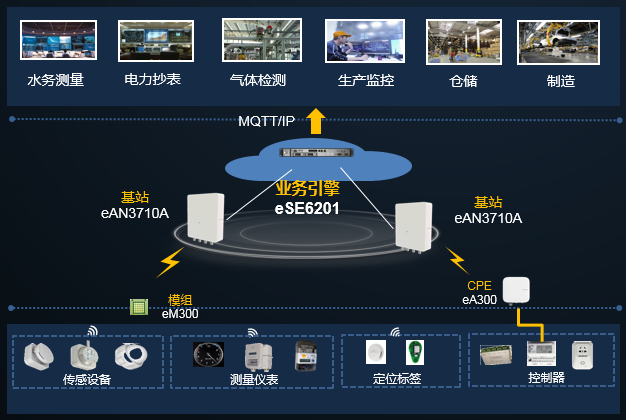 業務引擎Service Engine(eSE6201)包括三大功能,即接入認證管理、操作維護管理和應用接口管理三大功能。其中接入認證管理功能模塊主要用于基站的接入控制、認證和鑒權,信令和數據處理,操作維護等功能。應用接口管理主要負責提供與上層物聯網平臺或者行業應用之間的接口。Service Engine對外可提供基于標準的IoT接口(MQTT/IP轉發)對接上層物聯網平臺,起到數據轉發、IP代理的功能。操作維護管理指的是對于下轄的AirNode、CPE進行管理的能力。