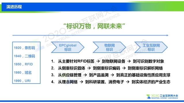 “工業互聯網標識解析未來的發展路徑將是多種體系長期共存,標識解析的服務網絡將是核心關鍵。從技術的角度分析,標識解析的對象可以分為識別虛擬資源和識別物理資源兩類。標識載體按照通信能力也可以劃分為兩類,一類是被動的標識載體,包括條形碼、二維碼、頻射電子標簽等,被動標識載體是現階段的主要形式;另一類是主動標識載體,包括像UICC卡、通信模組、智能芯片等具有雙向通信、可靈活更改、安全增強等突出優勢的載體,這也將是未來發展的趨勢,目前主動標識載體的比例正在逐步增加,網絡化標識解析的應用潛力非常大。”