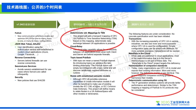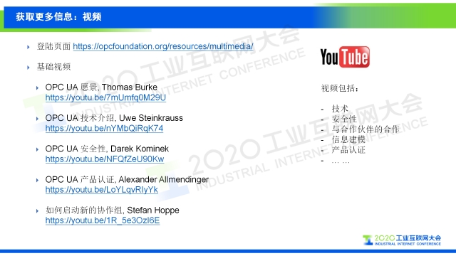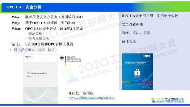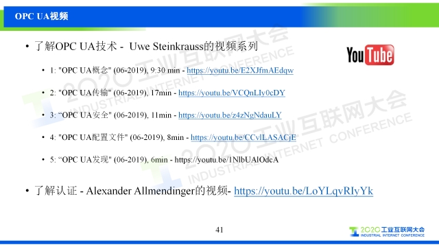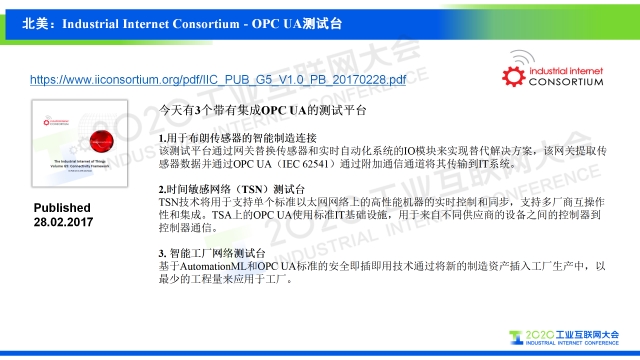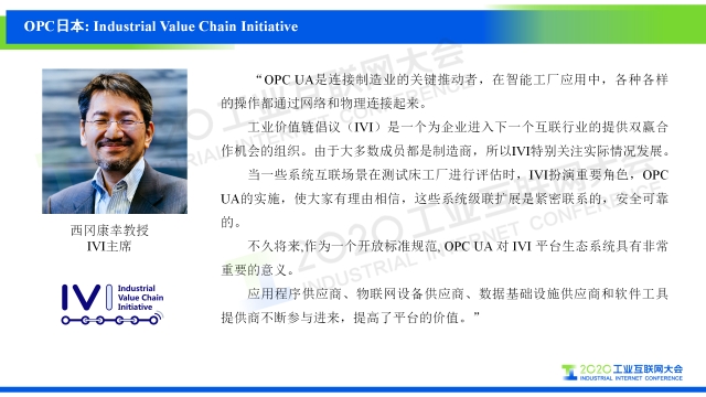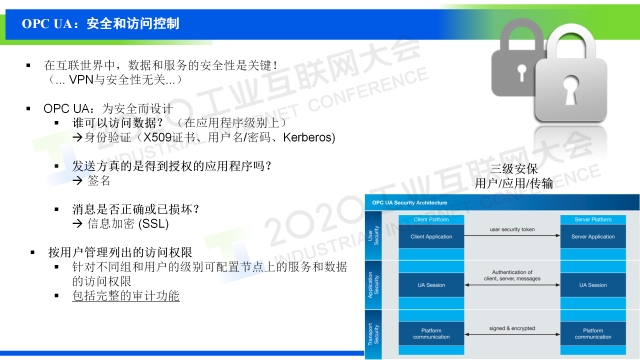 點(diǎn)擊下方鏈接,觀看演講視頻 專家說 “OPC UA是一個(gè)擁有良好互操作性的標(biāo)準(zhǔn),它為用戶提供了安全和標(biāo)準(zhǔn)化的信息和接口,很多會(huì)員也好,供應(yīng)商也好,終端用戶也好,使用OPC UA是因?yàn)樗軌蚝芎玫膶?shí)現(xiàn)跨供應(yīng)商的數(shù)據(jù)交互。同樣,OPC UA的開放性也可以使這些終端用戶為未來即將到來的技術(shù)實(shí)現(xiàn)做好準(zhǔn)備。OPC UA通過三種方式來保障信息安全,即信息加密、身份識(shí)別、權(quán)限管理,與操作系統(tǒng)大致相似,所以O(shè)PC UA也被稱為是能夠提供系統(tǒng)級(jí)安全防護(hù)的標(biāo)準(zhǔn)。總的來說,OPC UA讓機(jī)器擁有信息模型,通過信息模型擁有自我描述的能力,從而能夠極大的減少配置工作,降低工程成本。” 以下是演講PPT 敬請(qǐng)閱讀