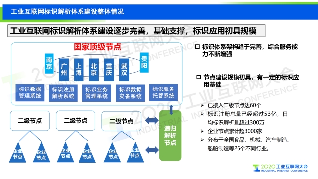 在2020工業互聯網大會“工業互聯網標識”主題論壇上,中國信息通信研究院工業互聯網和物聯網研究所副總工程師羅松分享了我國工業互聯網標識解析體系建設情況及中國信息通信研究院在建立標識應用供應商體系方面所做的工作,會上還發布了基于標識應用體系三大層級十個應用場景的首批工業互聯網標識應用供應商合作伙伴名單
