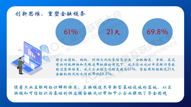 “營口將發揮好“船小好調頭”的特點,在工業互聯網、區塊鏈等技術、新模式上創新探索,努力形成典型經驗,為東北地區乃至全國提供有價值的樣本參考。一是通過標識解析+區塊鏈,打造智能制造之城;二是通過VR+虛擬園區,打造虛擬現實之城;三是通過可信標識+數字貨幣,打造數字金融之城;四是通過城市大腦加神經網絡,打造智慧治理之城。”