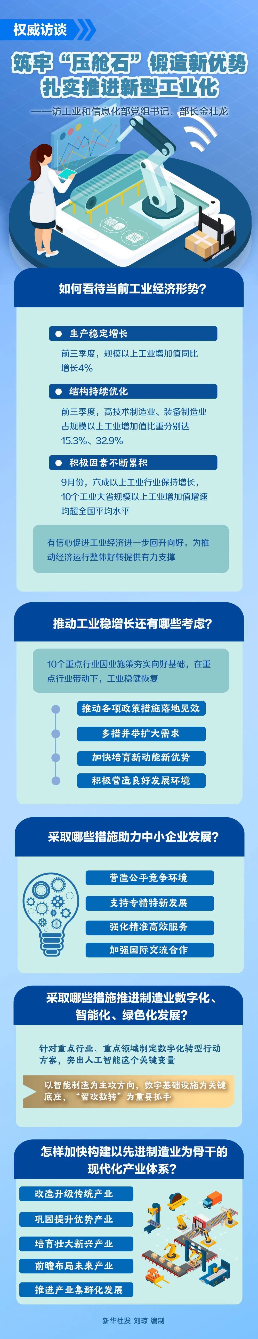 工業是國民經濟的主體和增長引擎,四季度經濟運行對實現全年目標任務至關重要。如何鞏固恢復向好態勢?怎樣培育持久競爭力?工業和信息化部黨組書記、部長金壯龍接受了新華社記者采訪。