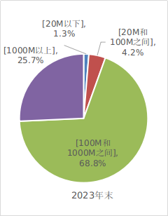物聯網終端連接數占比近六成。截至2023年底,我國移動網絡終端連接總數達40.59億戶,其中蜂窩物聯網終端用戶數達23.32億戶,占移動終端連接數比重達到57.5%,同比增長26.4%,本年凈增4.88億戶,仍處規?;l期;蜂窩物聯網終端應用于公共服務、車聯網、智慧零售、智慧家居等領域的規模分別達7.99億、4.54億、3.35億和2.65億戶。