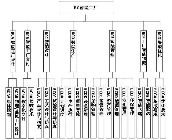主要包括智能工廠設計、智能工廠交付、智能設計、智能生產、智能管理、工廠智能物流、集成優化等7個部分,如圖7所示。主要規定智能工廠設計與交付,智能工廠運營時的設計、生產、管理、物流、系統集成等內容。