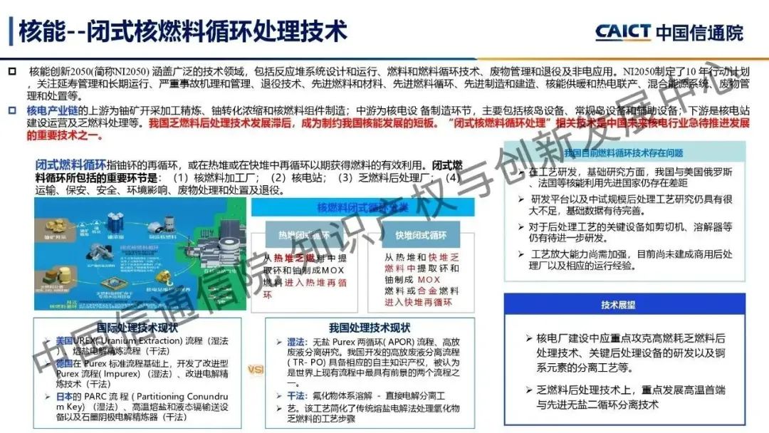本期為您帶來由中國信通院知識產權與創新發展中心司法鑒定部副主任閆坤分享的《雙碳前沿科技創新——綠色技術》。能源領域是實現“雙碳”目標的關鍵,通過對傳統煤炭能源領域和光伏、風能、核能及氫能等綠色能源領域的前沿技術進行研究及分析,了解了能源領域的前沿技術發展現狀及技術創新突破。煤炭領域的煤氣化技術、光伏領域的顆粒硅生產技術和光伏建筑一體化技術、風能領域的海上漂浮式風電技術、核能領域的閉式核燃料循環處理技術、氫能領域的氫制備和氫氣儲運技術是未來能源領域的重要前沿技術,通過對這些技術的創新與突破,能夠推動能源領域碳中和路徑健康高速發展。