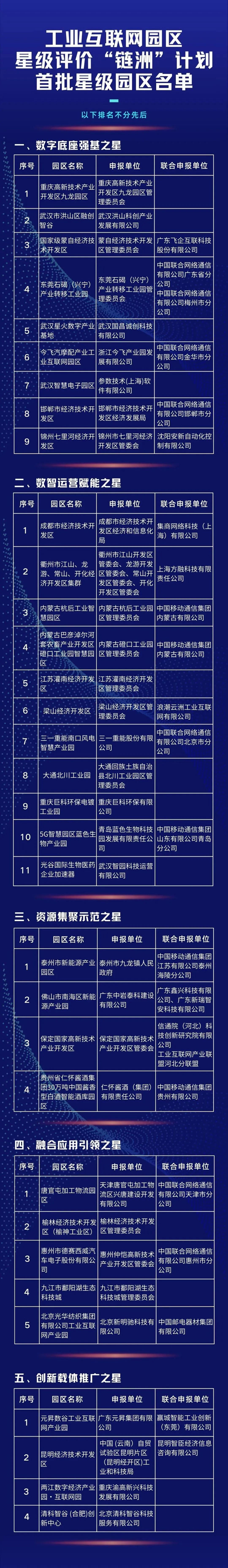 《工業互聯網園區星級評價“鏈洲”計劃首批星級園區名單》公布