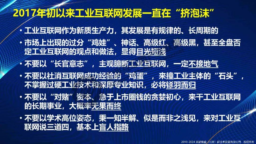 中國工業(yè)互聯(lián)網(wǎng)兼容繼承了兩化融合、企業(yè)信息化、工業(yè)自動(dòng)化、智能制造、CIMS、IPD、數(shù)字化轉(zhuǎn)型、新型工業(yè)化等多模式活動(dòng),以可持續(xù)融合創(chuàng)新方式,支撐、優(yōu)化、賦能企業(yè)發(fā)展,對推動(dòng)制造業(yè)轉(zhuǎn)型升級、提升生產(chǎn)效率、降低運(yùn)營成本等方面具有重要意義。在過去多年發(fā)展中工業(yè)互聯(lián)網(wǎng)已經(jīng)擠出很多泡沫,即將迎來高質(zhì)量發(fā)展新時(shí)期。