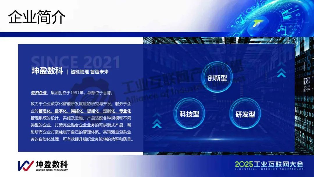 5月22日,在2025工業互聯網大會“新型工業控制與智能互操作發展專題活動”上,北京坤盈數科智能科技有限公司總經理張譽發表了《企業數字化研發底座》的主題演講。