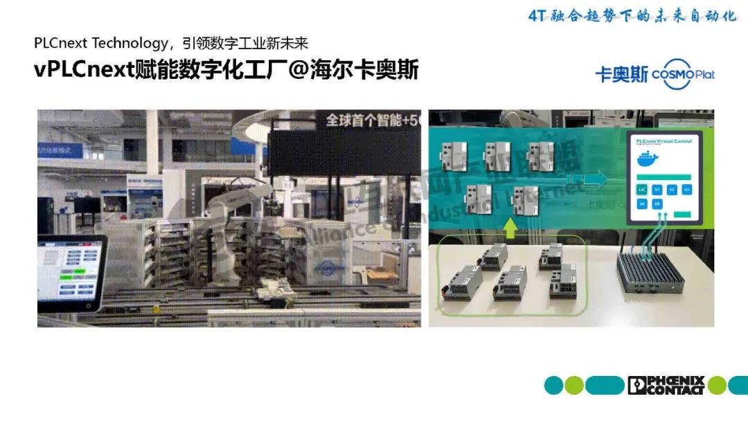 梁恩泉介紹,菲尼克斯電氣推出基于PLCnext技術(shù)的SoftPLC解決方案,突破傳統(tǒng)PLC硬件限制,實(shí)現(xiàn)虛擬化部署。該方案將PLC運(yùn)行時(shí)環(huán)境(SoftPLC Runtime/eCLR)嵌入用戶硬件平臺(tái),支持IEC 61131-3與C/C++等高級(jí)語言混合編程,并兼容工業(yè)機(jī)器人、數(shù)控機(jī)床等多場(chǎng)景需求。最新發(fā)布的PLCnext Virtual Control作為純軟件方案,可在通用硬件上動(dòng)態(tài)創(chuàng)建PLC實(shí)例,實(shí)現(xiàn)功能靈活擴(kuò)展和集中維護(hù)。該技術(shù)通過IT/OT深度融合,集成開源生態(tài),為基礎(chǔ)設(shè)施、能源、工廠自動(dòng)化等領(lǐng)域提供數(shù)字化底座,推動(dòng)工業(yè)自動(dòng)化進(jìn)入"硬件平臺(tái)化、軟件服務(wù)化"的新階段。