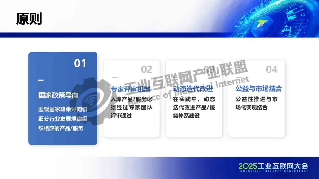 《數字化綠色化協同轉型產品手冊1.0》的四個原則:一是國家政策導向:圍繞國家政策導向和細分行業發展規律組織相應的產品/服務。二是專家評審機制:入庫產品/服務必須經過專家團隊評審通過。三是動態迭代改進:在實踐中,動態迭代改進產品/服務體系建設。四是公益與市場結合:公益性推進與市場化實現結合。
