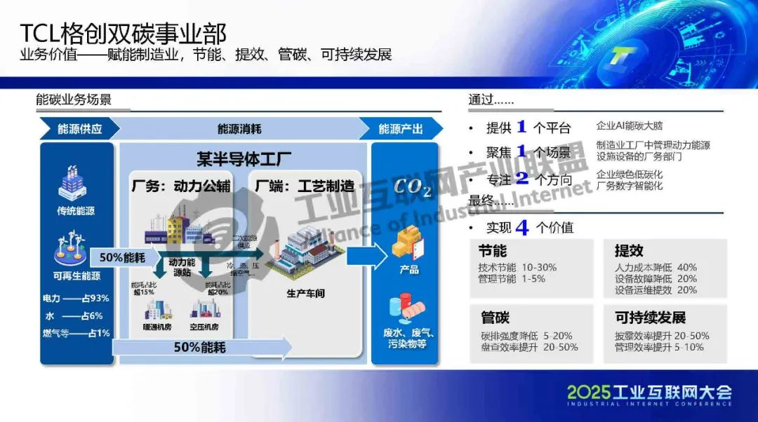 5月22日,在2025工業(yè)互聯(lián)網(wǎng)大會(huì)“工業(yè)數(shù)字化綠色化協(xié)同轉(zhuǎn)型專(zhuān)題活動(dòng)”上,工業(yè)互聯(lián)網(wǎng)產(chǎn)業(yè)聯(lián)盟碳達(dá)峰碳中和工作組副主席、TCL格創(chuàng)東智科技有限公司能源雙碳事業(yè)部總經(jīng)理王輝發(fā)表了《AI賦能高端制造業(yè)雙化協(xié)同轉(zhuǎn)型》的主題演講。