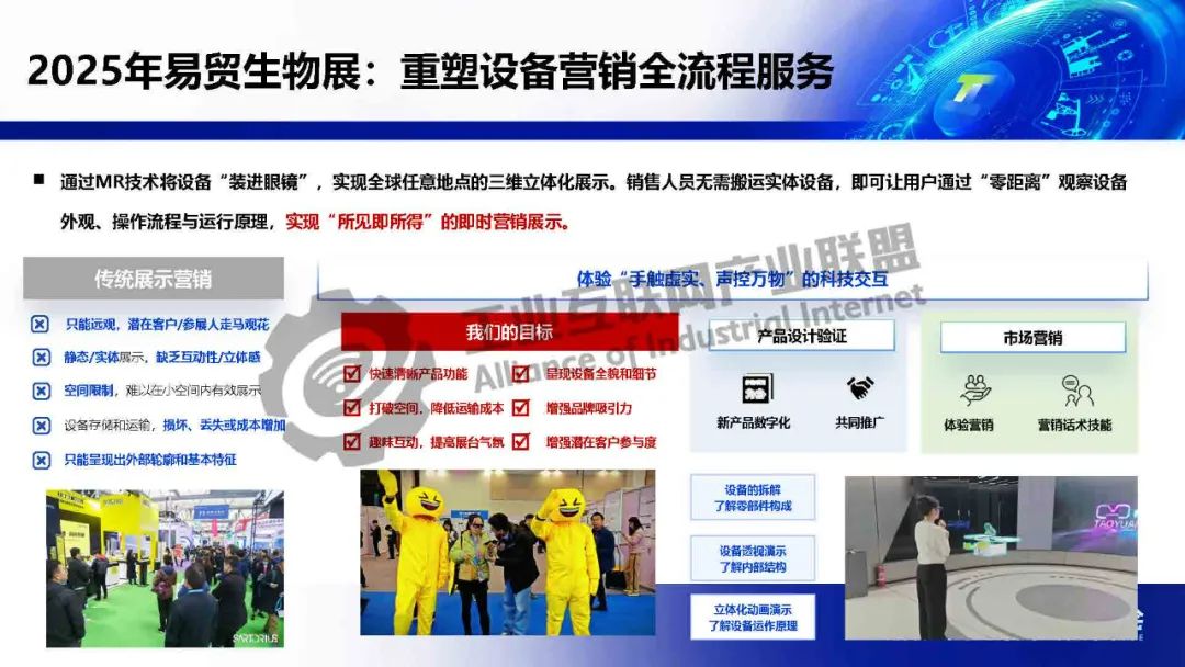 設(shè)備營銷全流程服務(wù)打破傳統(tǒng)營銷方式,通過MR技術(shù)將設(shè)備“裝進眼鏡”,實現(xiàn)全球任意地點的三維立體化展示。銷售人員無需搬運實體設(shè)備,即可讓用戶通過“零距離”觀察設(shè)備外觀、操作流程與運行原理,實現(xiàn)“所見即所得”的即時營銷展示。