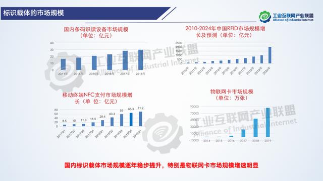 標識載體,就是指承載標識編碼資源的標簽。根據標識載體是否能夠主動與標識數據讀寫設備、標識解析服務節點、標識數據應用平臺等發生通信交互,可以將標識載體分為主動標識載體和被動標識載體兩類。主動標識載體可以嵌入在工業設備內部,具備聯網通信功能,能夠主動向標識解析服務節點或標識數據應用平臺發起連接,而無需借助標識讀寫設備來觸發。未來將進一步加快推動主動標識應用和推廣,加強核心技術研究,構筑標識產業生態;完善核心標準體系,加強國際標準合作;立足垂直行業需求,聚焦聯動發展創新;構建安全防護體系,保障標識數據安全,以切實推動工業互聯網標識產品和應用的規模化、標準化和低成本化發展,保持國內標識載體市場規模逐年穩步提升良好態勢。