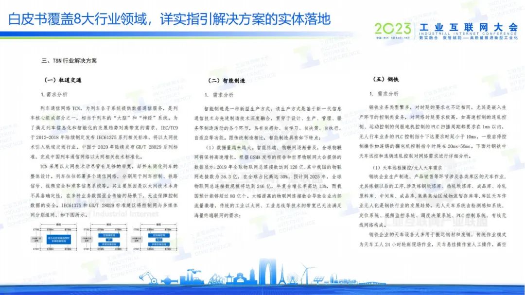 《TSN解決方案白皮書》旨在加快TSN解決方案落地產業(yè),助力工業(yè)企業(yè)達成提質增效降本;同時為TSN產業(yè)上下游的有效協(xié)同給出指引,讓工業(yè)界能更快速的利用TSN網絡技術實現未來網絡變革。