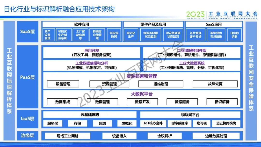 在會上,趙鵬飛分享了日化行業與工業互聯網融合應用的實踐成果,包含設備預測性運維、產品質量溯源管理、產品防竄貨監測、供應鏈管理等解決方案。