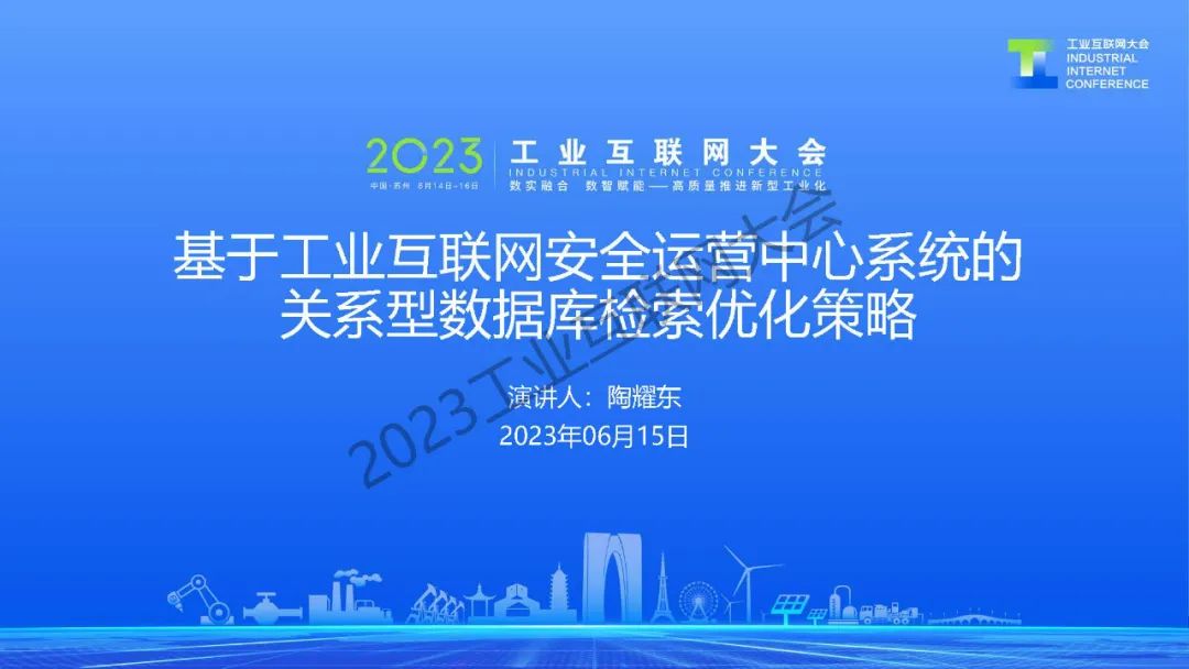 6月15日,在2023工業(yè)互聯(lián)網(wǎng)大會“2022-2023工業(yè)互聯(lián)網(wǎng)學(xué)術(shù)大會暨中國通信學(xué)會第一屆工業(yè)互聯(lián)網(wǎng)委員會第二次全體會議”上,北京雙湃智安科技有限公司首席科學(xué)家陶耀東發(fā)表了《基于工業(yè)互聯(lián)網(wǎng)安全運(yùn)營中心系統(tǒng)的關(guān)系型數(shù)據(jù)庫檢索優(yōu)化策略》的主題演講。