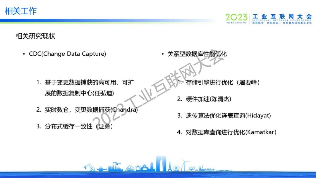 陶耀東首先對工業(yè)互聯(lián)網(wǎng)安全運(yùn)營中心系統(tǒng)研發(fā)過程中面臨的問題展開介紹。之后,為解決安全運(yùn)營中心系統(tǒng)面臨的問題,分析了當(dāng)前CDC的研究與應(yīng)用以及關(guān)系型數(shù)據(jù)庫性能調(diào)優(yōu)與查詢優(yōu)化,提出一種基于CDC的加快關(guān)系型數(shù)據(jù)庫檢索速度的優(yōu)化策略。