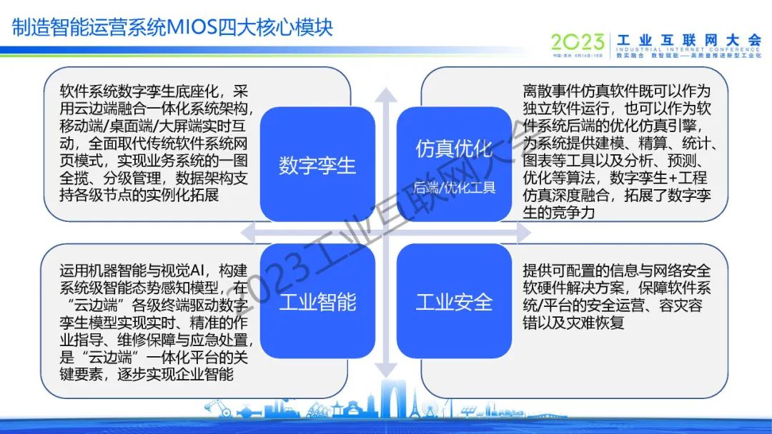 “制造智能運營系統MIOS的理念提出,基于數字孿生底座,深度融合工業互聯網、少人化柔性生產MOM、工廠仿真FS、工業AI及工業安全等關鍵技術,構建“云/邊/端”一體化智能運營/運維平臺。MIOS具有強大的智能分析能力,正在推動工業AI和工廠仿真FS實現從“看見”到“理解”的跨越,使得齊套性預測、智能調度、預測性維護等工作變得可能,助力傳統行業/企業數字化轉型更高效更安全?!?/p>