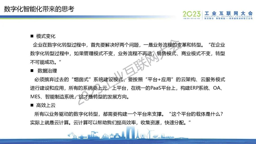“必須擯棄過去的“煙囪式”系統建設模式,要按照“平臺+應用”的云架構、云服務模式進行建設和應用,所有的系統要上云、上平臺,在統一的PaaS平臺上,構建ERP系統、OA、MES、智能制造系統,這才是轉型的發展方向。”
