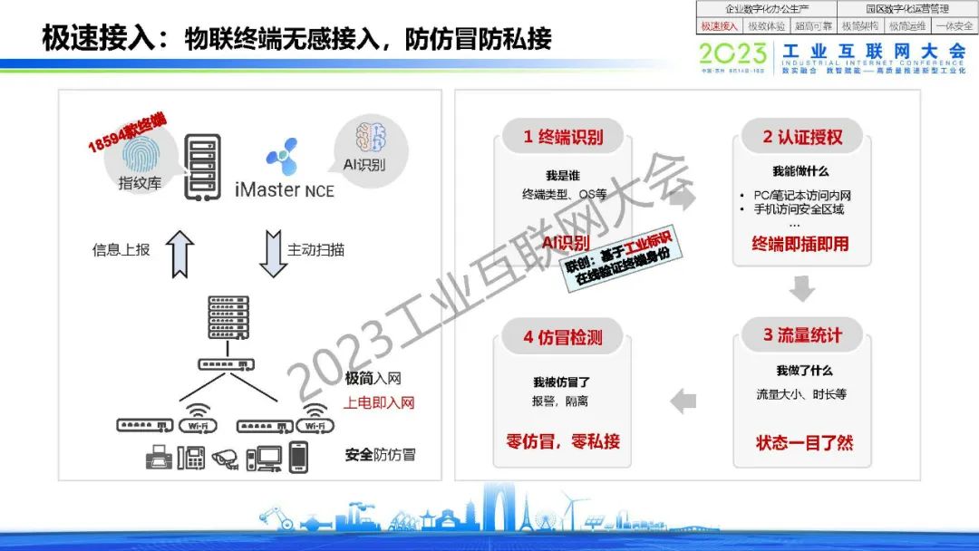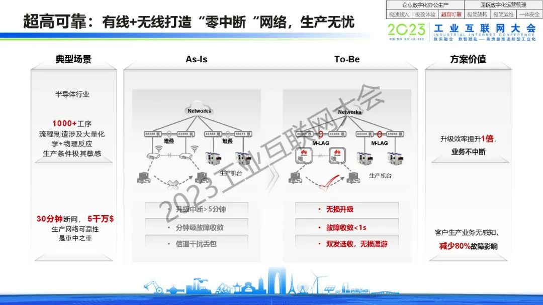 程劍表示,產業園區正進入智慧化4.0時代,園區ICT基礎設施正進入集約化建設模式,企業數字化正在從辦公場景延伸到生產場景。企業數字化辦公生產需要做到極速接入,極致體驗和超高可靠。園區數字化運營管理需要做到極簡架構,極簡運維和一體安全。