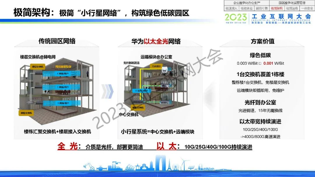 “集約化建設的園區網絡,既要服務好企業數字化辦公、數字化生產,也要支撐好園區自身高效運營管理。“