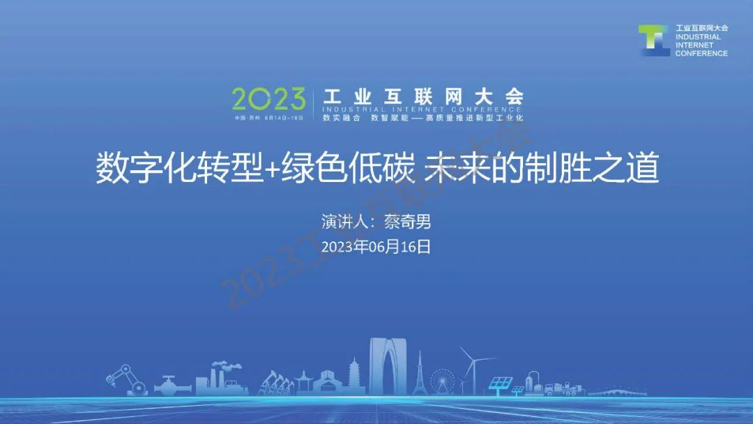 6月16日,在2023工業(yè)互聯(lián)網(wǎng)大會“數(shù)字助力碳達峰碳中和高端論壇”上,研華科技(中國)工業(yè)物聯(lián)網(wǎng)事業(yè)群總經(jīng)理蔡奇男發(fā)表了《數(shù)字化轉(zhuǎn)型+綠色低碳 未來的制勝之道》的主題演講。