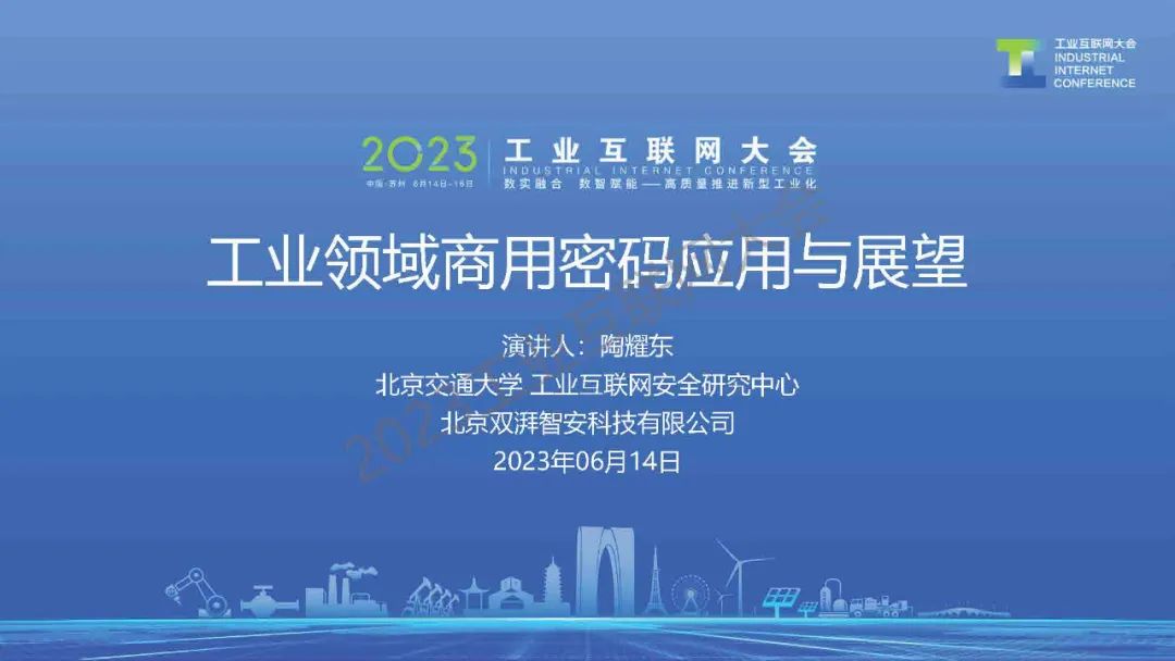 6月14日,在2023工業(yè)互聯(lián)網(wǎng)大會“工業(yè)互聯(lián)網(wǎng)密碼創(chuàng)新應(yīng)用論壇”上,北京交通大學(xué)工業(yè)互聯(lián)網(wǎng)安全研究中心主任陶耀東發(fā)表了《工業(yè)領(lǐng)域商用密碼應(yīng)用與展望》的主題演講。