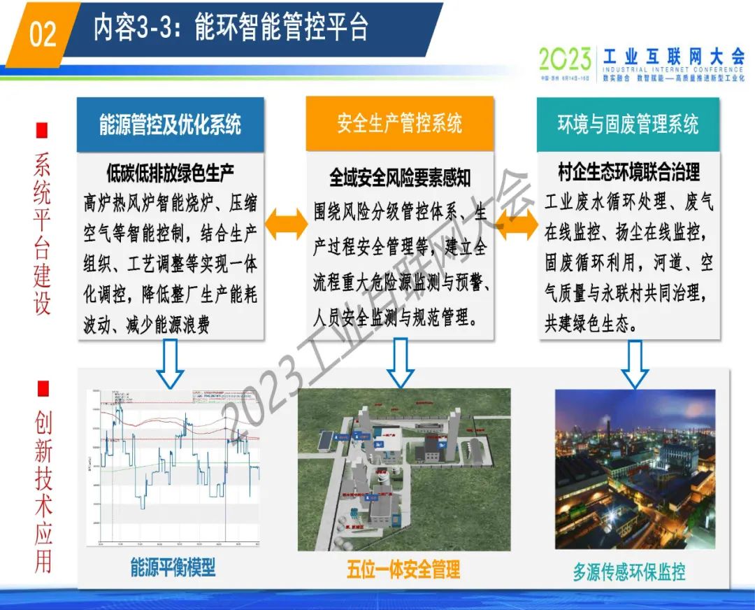 “環(huán)境與固廢管理系統(tǒng)是通過村企生態(tài)環(huán)境聯(lián)合治理,將工業(yè)廢水循環(huán)處理、廢氣在線監(jiān)控、揚塵在線監(jiān)控,固廢循環(huán)利用,河道、空氣質量與永聯(lián)村共同治理,共建綠色生態(tài)。”