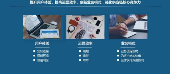 入庫、貨運、清關、驗收貫通。并通過 B2B 模式拉通到客戶系統 ,實現客戶需求到訂 單交付的端到端貫通