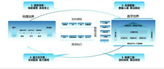 在如何開展數字化轉型方面 ,我們沉淀了數字化轉型的方法論 ,我們總結為四句話 , 極致場景牽引、全域數據支撐、局部工具優化、實現最大化交易。這套方法論在所有業