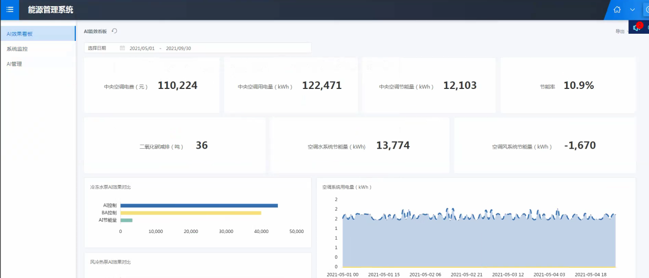 在穩(wěn)定運(yùn)行的基礎(chǔ)上,通過AI能效系統(tǒng)使設(shè)備高效運(yùn)行。根據(jù)實(shí)時(shí)采集的環(huán)境及設(shè)備數(shù)據(jù)對(duì)系統(tǒng)進(jìn)行實(shí)時(shí)調(diào)優(yōu),利用數(shù)學(xué)模型,優(yōu)化控制中央空調(diào)系統(tǒng)的運(yùn)行模式,提高系統(tǒng)運(yùn)行效率,延長設(shè)備壽命,降低系統(tǒng)維修成本。