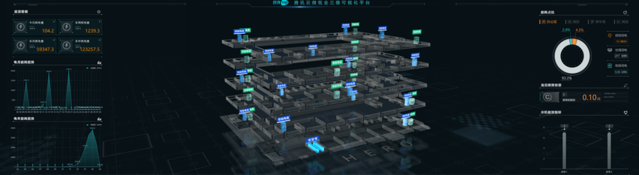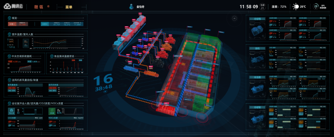 園區(qū)運(yùn)營期間,建筑能源的管理水平以及室內(nèi)環(huán)境的健康舒適是兩項(xiàng)重要指標(biāo)。本項(xiàng)目基于數(shù)字底座打造全域全要素互聯(lián)的數(shù)實(shí)融合新基建體系,通過建設(shè)智慧能源管理中心,聯(lián)動(dòng)能耗計(jì)量系統(tǒng)、冷源群控系統(tǒng)、風(fēng)機(jī)盤管系統(tǒng)、通風(fēng)系統(tǒng)等,提供精細(xì)的能耗監(jiān)測、多維度的統(tǒng)計(jì)分析、智能的設(shè)備控制、可靠的報(bào)警管理等服務(wù),一方面利用物聯(lián)網(wǎng)技術(shù)對(duì)建筑能源消耗實(shí)行精細(xì)化計(jì)量,在精細(xì)化計(jì)量的基礎(chǔ)上,通過多維度分析,實(shí)時(shí)掌握能源使用動(dòng)態(tài),從而為能源決策提供有效的數(shù)據(jù)支撐;另一方面利用大數(shù)據(jù)智能分析技術(shù),對(duì)建筑供冷供熱系統(tǒng)進(jìn)行優(yōu)化控制,不僅可以有效提高系統(tǒng)運(yùn)行效率,減少系統(tǒng)用能成本,還可以有效提升園區(qū) 內(nèi)部各建筑區(qū)域的環(huán)境空氣質(zhì)量。通過能源精細(xì)化管理、智能優(yōu)化控制、智能設(shè)備設(shè)施管理,實(shí)現(xiàn)“三理”聯(lián)動(dòng),助力“雙碳”目標(biāo)。