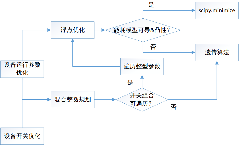 根據(jù)歷史數(shù)據(jù),采用回歸模型及時(shí)序預(yù)測模型,提取與能耗相關(guān)的特征,采用標(biāo)準(zhǔn)化的特征預(yù)處理,以能耗值作為目標(biāo)列,進(jìn)行模型擬合,進(jìn)而實(shí)時(shí)獲取數(shù)據(jù)并預(yù)處理,其目標(biāo)是為了在已知負(fù)載、環(huán)境變量(室外溫濕度等)的前提下,預(yù)知各設(shè)備處于不同開關(guān)狀態(tài)組合和不同的控制量設(shè)定值時(shí),系統(tǒng)將產(chǎn)生多少能耗,通過能耗預(yù)測值對(duì)接優(yōu)化算法;以降低能耗值為目標(biāo),在滿足約束條件的基礎(chǔ)上,通過調(diào)整各可控變量,使得目標(biāo)量降低,從而實(shí)現(xiàn)節(jié)能的目的。