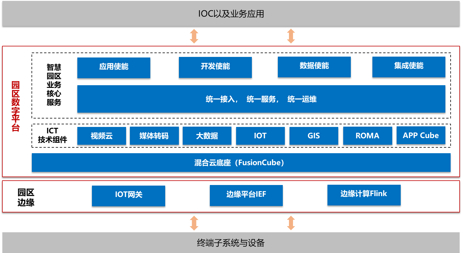 在技術方案方面,園區(qū)采用了最新的5G和WiFi6技術,實現(xiàn)園區(qū)無線網(wǎng)絡的全覆蓋。在園區(qū)廣泛部署智能物聯(lián)網(wǎng)關、智能攝像頭、能源路由器等邊緣智能設備,實現(xiàn)對園區(qū)人、車、物、能、碳等各種數(shù)據(jù)的全面采集。依托云、大、物、智等技術構建的數(shù)字平臺,對園區(qū)數(shù)據(jù)實現(xiàn)統(tǒng)一接入和匯聚、融合,對設備實現(xiàn)統(tǒng)一運維,對業(yè)務應用實現(xiàn)統(tǒng)一服務。綜合運營中心IOC實現(xiàn)園區(qū)各子系統(tǒng)的態(tài)勢感知、運營狀態(tài)可視化、業(yè)務分析和預警、決策支持和聯(lián)動指揮,實現(xiàn)對園區(qū)的智慧化管理。