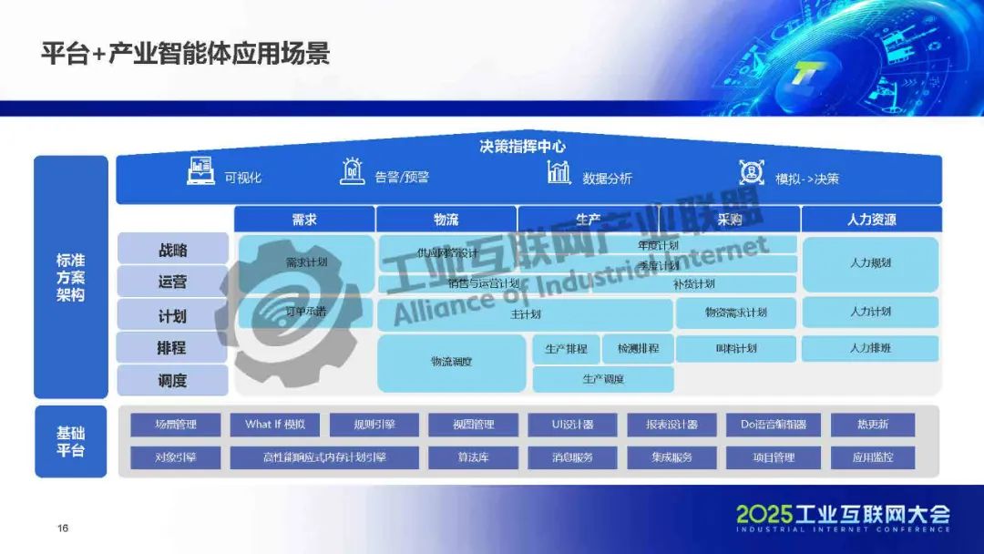 企業(yè)決策優(yōu)化中樞可比作"指揮部",通過其資源智能優(yōu)化協(xié)同工業(yè)互聯(lián)網(wǎng)平臺(tái)整合ERP、SRM、WMS等各業(yè)務(wù)系統(tǒng)數(shù)據(jù),形成全局態(tài)勢(shì)感知。該平臺(tái)包含成品需求預(yù)測(cè)、供應(yīng)鏈計(jì)劃優(yōu)化、車間作業(yè)指揮等專業(yè)模型,像指揮部一樣綜合分析生產(chǎn)任務(wù)、設(shè)備流程、實(shí)驗(yàn)室檢驗(yàn)等"戰(zhàn)場(chǎng)情況",生成最優(yōu)指令并協(xié)調(diào)各部門執(zhí)行。這種"指揮-部隊(duì)"協(xié)同模式實(shí)現(xiàn)了從主計(jì)劃到具體作業(yè)的全鏈路智能決策,有效提升了企業(yè)在復(fù)雜業(yè)務(wù)環(huán)境下的資源優(yōu)化和協(xié)同效率。