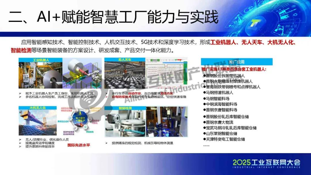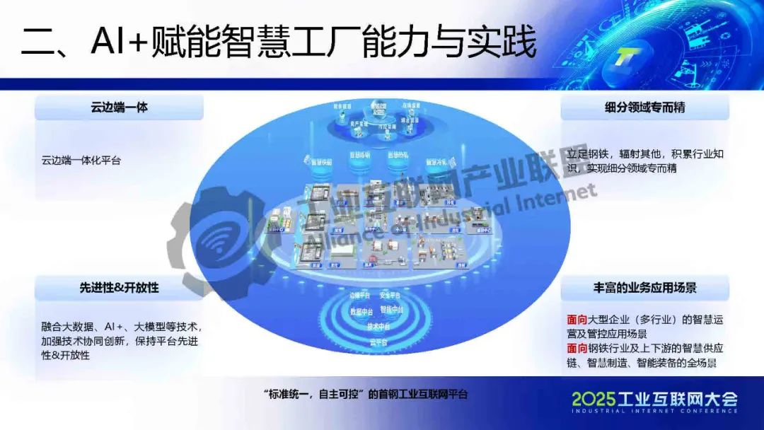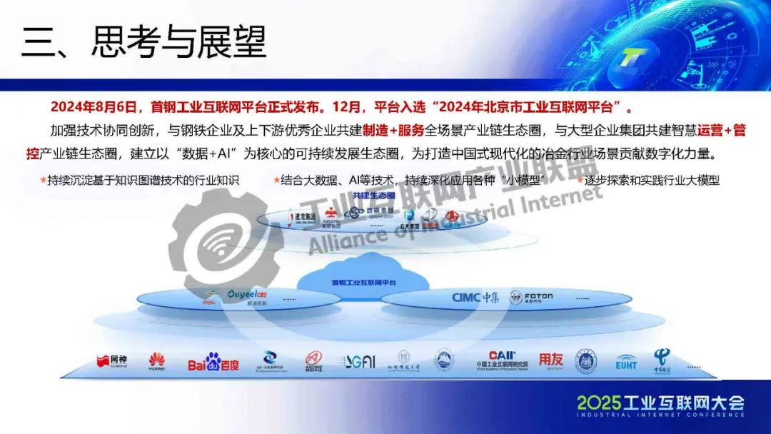 5月22日,在2025工業(yè)互聯(lián)網(wǎng)大會“工業(yè)互聯(lián)網(wǎng)平臺高質(zhì)量發(fā)展專題活動”上,北京首鋼自動化信息技術(shù)有限公司工業(yè)互聯(lián)網(wǎng)產(chǎn)業(yè)規(guī)劃總監(jiān)樊艷偉發(fā)表了《工業(yè)互聯(lián)網(wǎng)+AI賦能鋼鐵行業(yè)智慧工廠建設(shè)》的主題演講。